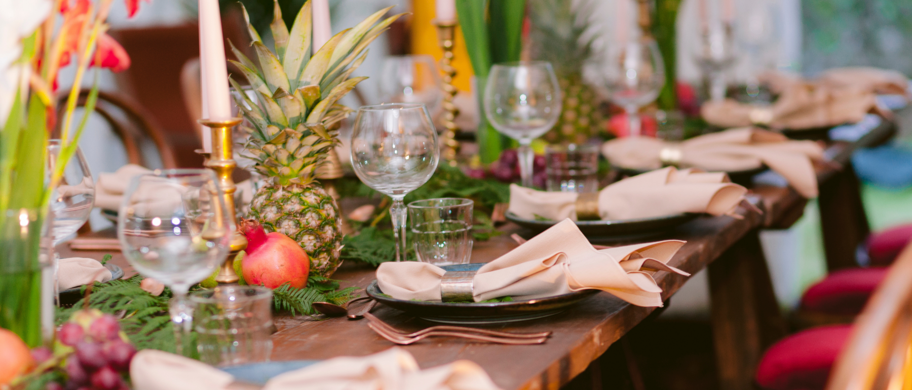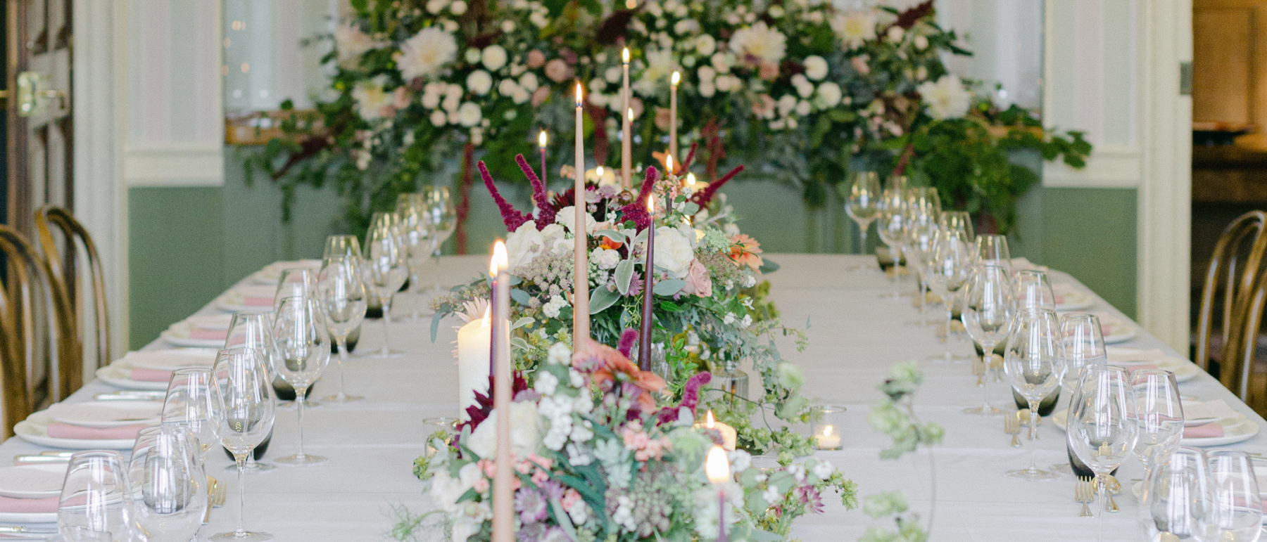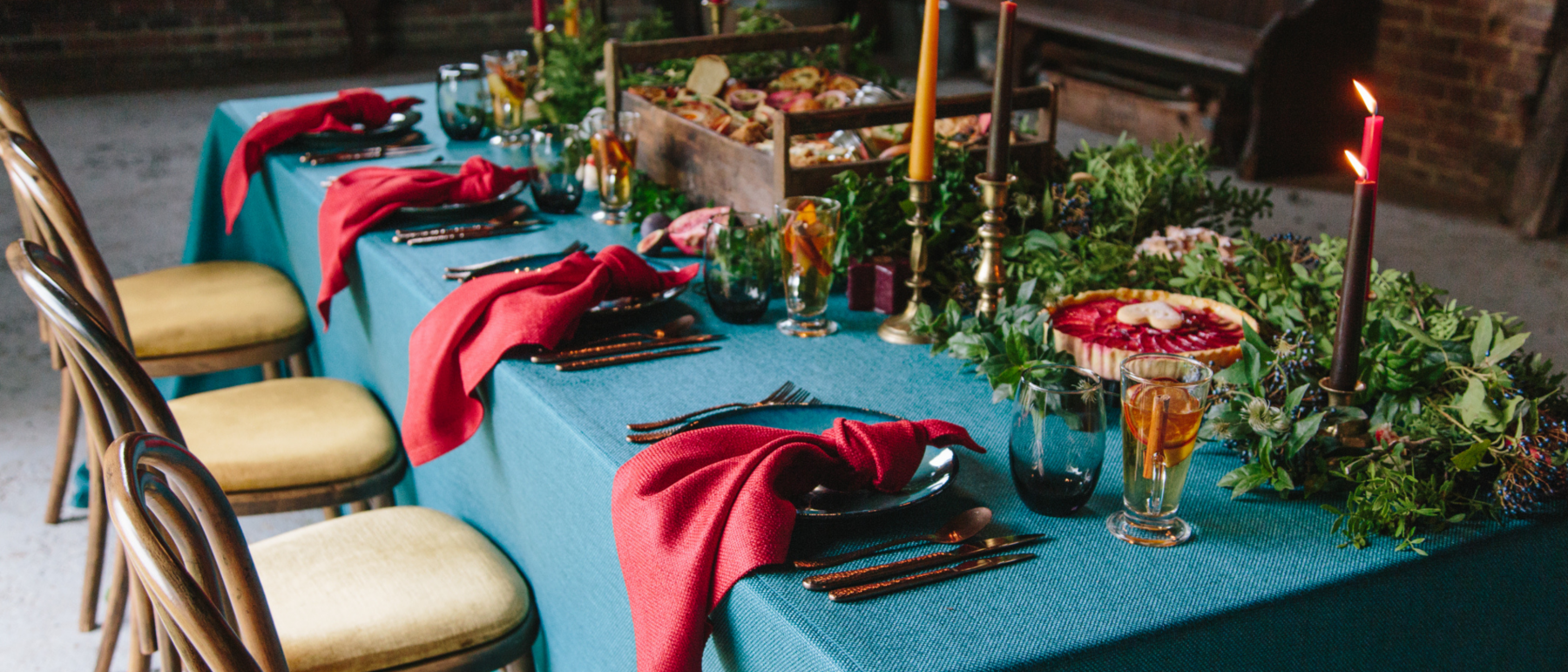 If you’re looking to have a wedding aesthetic that is seasonally appropriate then colour is a big part of this. The most obvious example is to use reds and greens if you’re planning a very traditional festive wedding around Christmas or in the depths of winter. Spring colours tend to be fresh greens and vibrant yellows while summer is sunny orange or hot pink. For an autumn event you might want to consider earthy browns, rich purples and autumnal oranges to reflect the changing shades in nature all around.