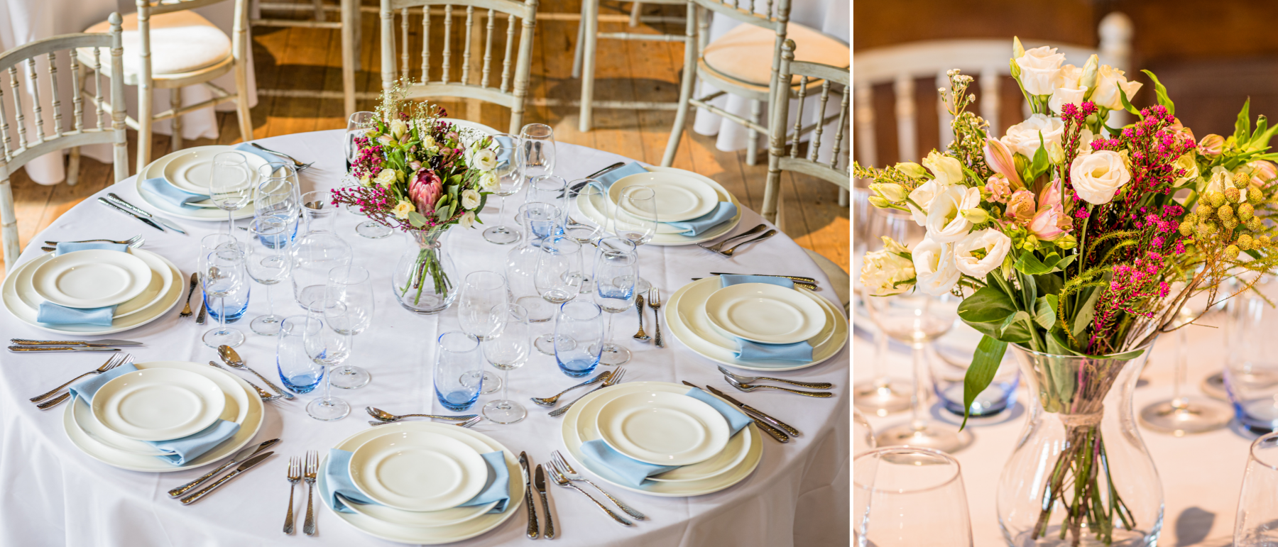 For a bit of vintage charm we used our Vintage Wavy china, teamed up with grape coloured water glasses, again finished beautifully with florals from Emily’s Roses and our tiered cake plates.