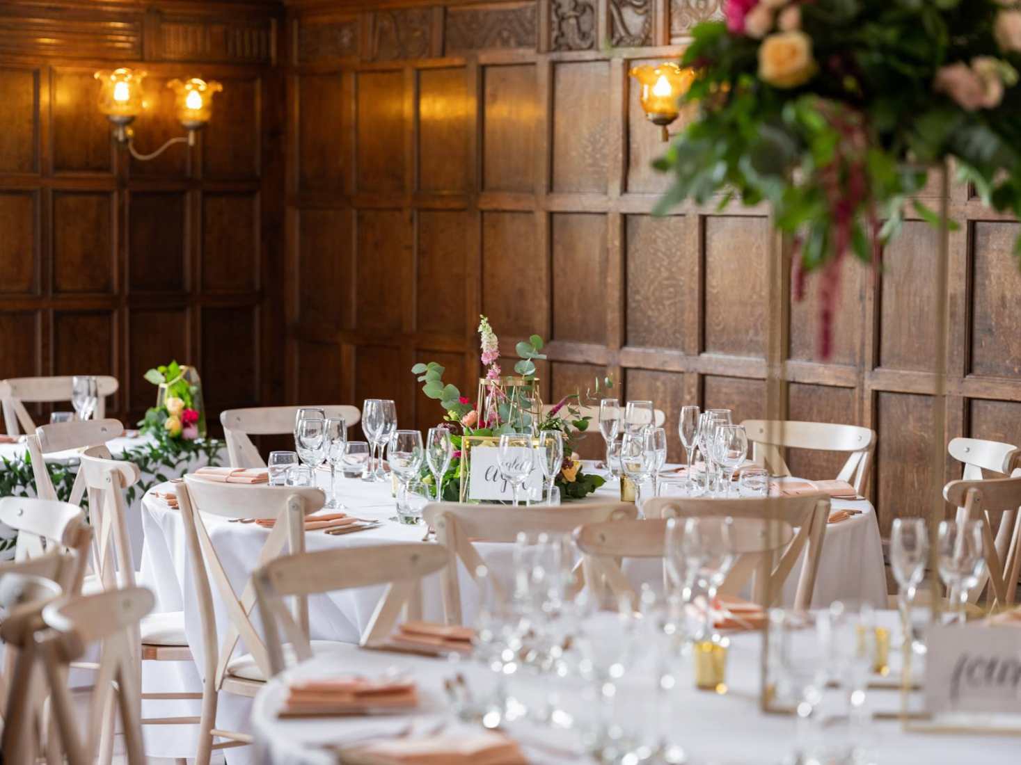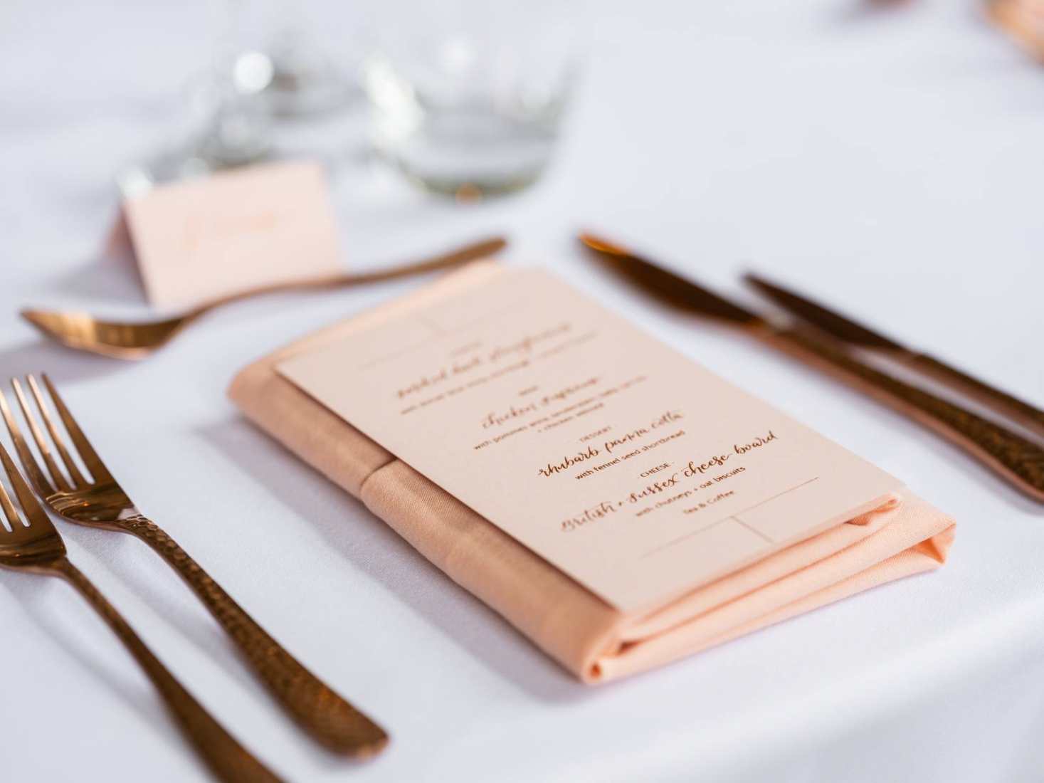 Inside, the dining room was decked out with pinks and coppers. We paired our Liza Rose cutlery with our signature napkins in Light Peach, and the cream crossback chairs worked perfectly alongside the wood panelled walls.