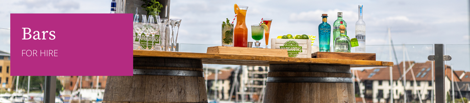Our range of bar hire includes our bespoke barrel bars as well as glassware, bar tools, trays, buckets and bins. So whether you are setting up for a wedding, a cocktail party or a corporate event, we will have a style to suit your function.
