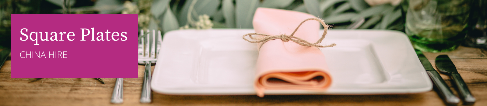 We have two different styles of square china plate on offer for hire, as both a starter plate and a main plate. Our simple White Square plate features soft rounded corners, whereas our Awesome plate has an asymmetrical design consisting of two rounded corners and two slightly pointed corners.