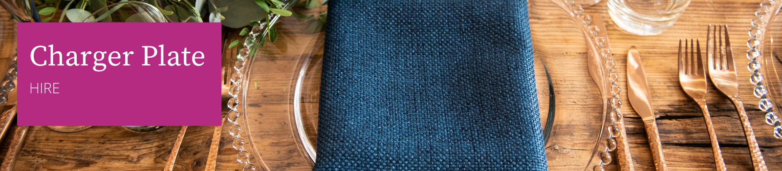 A charger plate can really add the wow factor to a table setting, particularly for events where the food will be plated up in the kitchen before being brought out, as a charger plate means that there is already a feature on the table when the guests arrive. Our charger plate range consists of both glass and china chargers, so whatever style you are going for, we have the perfect charger plate for hire.
