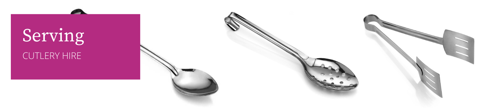 Although an often-overlooked element of event planning, serving cutlery is incredibly important to any function, whether it be a buffet, sharing platters or silver service. We have a range of serving cutlery available for hire, including serving tongs, service spoons, long handled and perforated spoons.