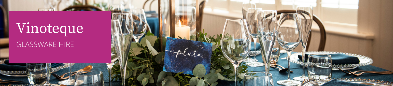 The height of sophistication, our Vinoteque crystal glassware range is the most elegant choice, perfect to hire for a wedding, private dining event or high end corporate function. The range includes two sizes of wine glass and a champagne flute.