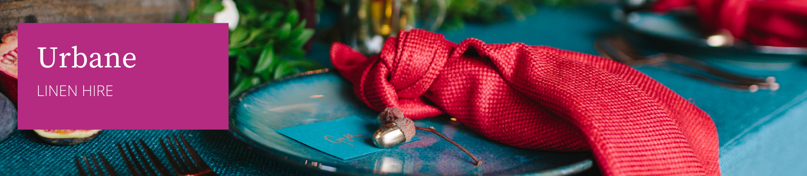 When it comes to setting the tone for an event, choosing the right linen can play a big role. With it’s open weave, our Urbane linen range is the height of luxury and comes in a wide variety of colours as well as the more traditional white, ivory and black table cloth. Tablecloths, napkins and table runners are all available.