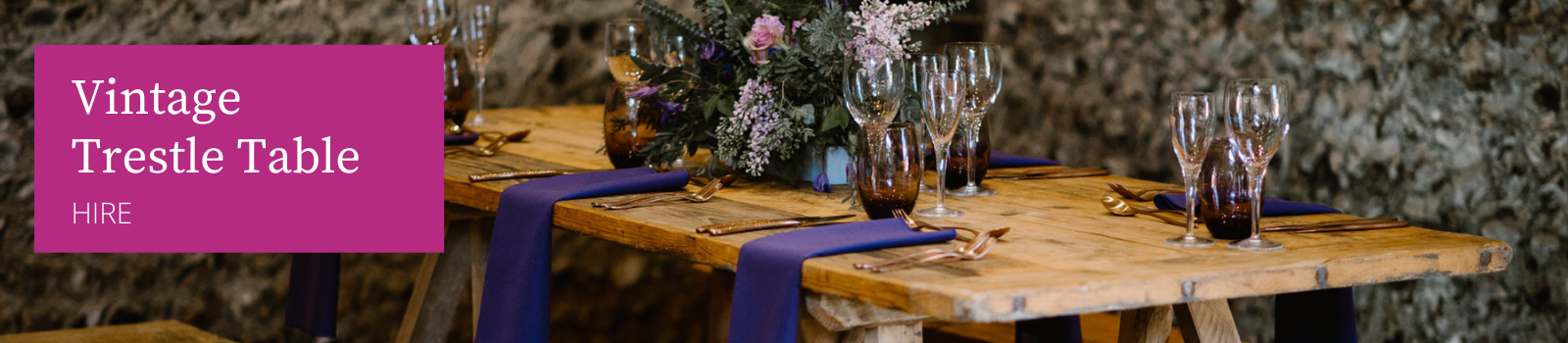 How you are going to seat your guests is an important decision for any event. If you’re hosting a rustic themed wedding or event then you might prefer the more formal style of trestle table seating. We have a range of beautiful vintage trestle tables for hire, in both a dark and light wood finish, which look gorgeous teamed with colourful napkins, or a runner down the middle of the table.