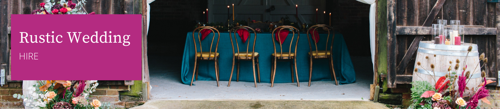 We have everything you need for a gorgeous rustic themed wedding available for hire, from vintage trestle tables and beautiful wooden chairs to oak barrels and even an oak barrel bar.