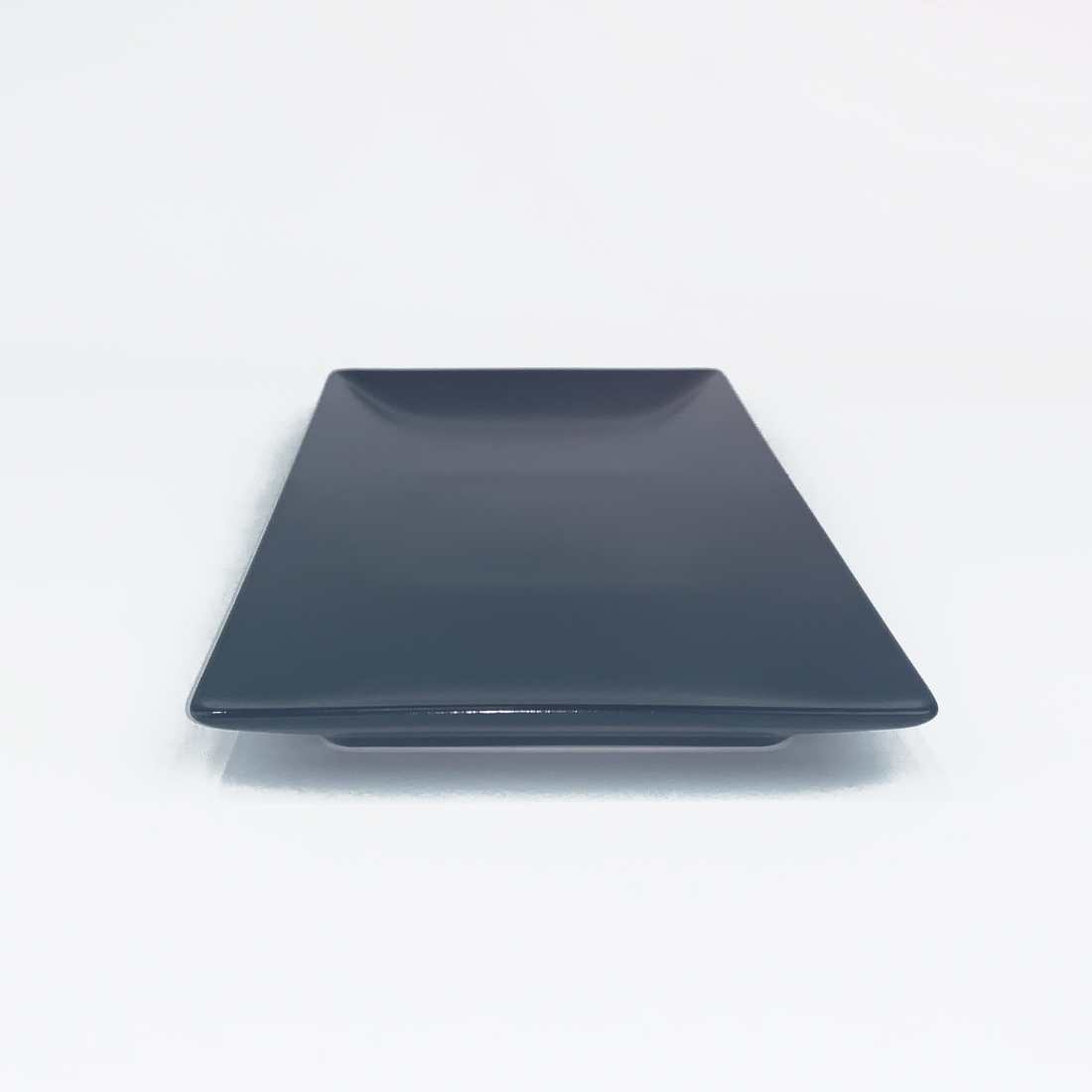 Elegant black rectangular plate, ideal for a modern and sophisticated dining presentation. Perfect for serving appetizers, main courses, or desserts, this plate offers a sleek and stylish backdrop that enhances the visual appeal of your dishes. Durable and versatile, suitable for both casual and formal settings.