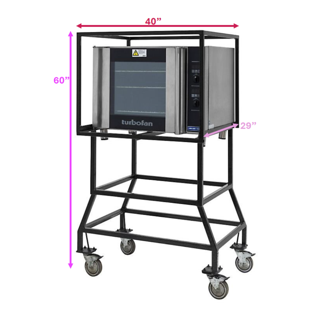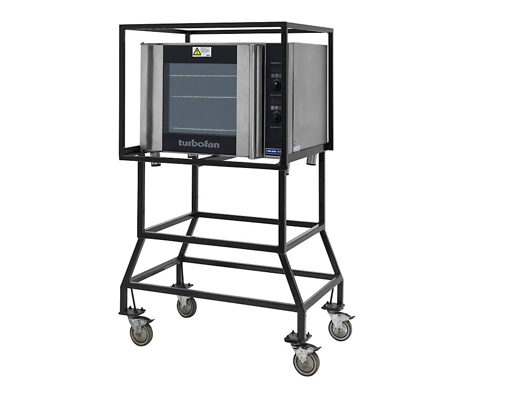 High-performance Blue Seal Turbo Oven on stand, perfect for commercial kitchens and catering services. Offers rapid, even cooking with advanced convection technology. Includes a sturdy stand for optimal placement and convenience