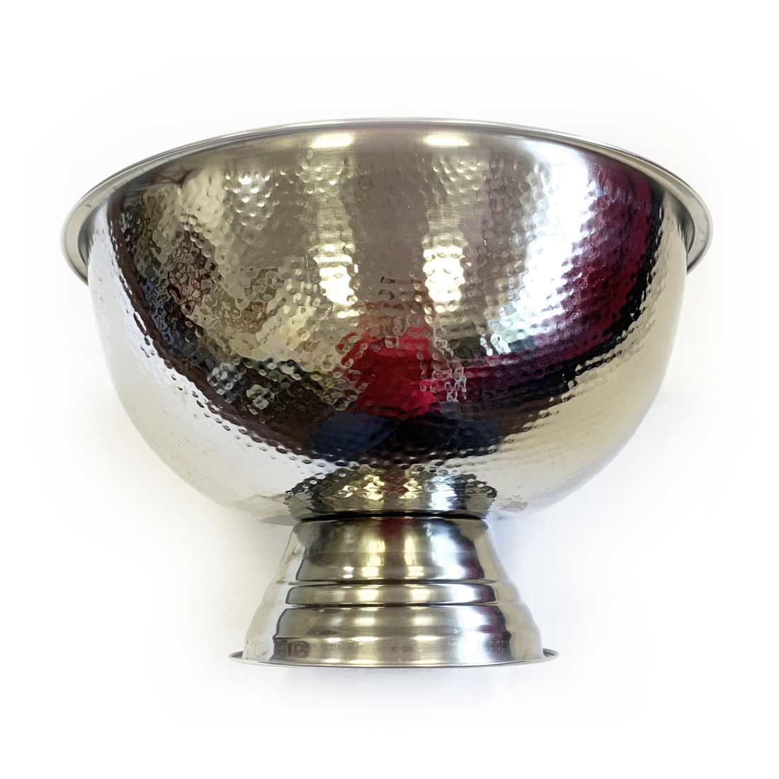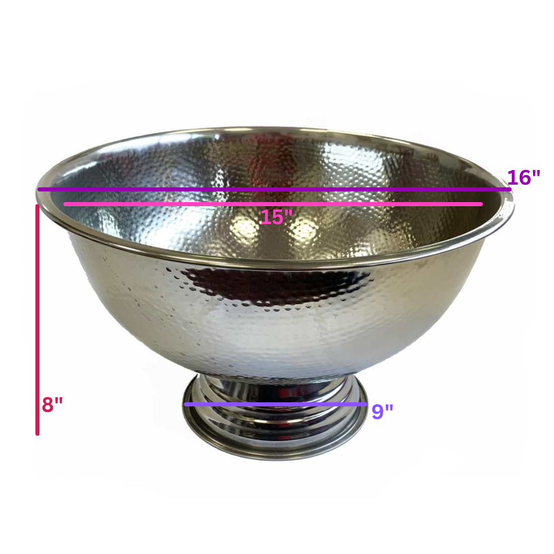 Simple punch bowl in a hammered finish that can also be used as a Champagne bottle cooler/bath.