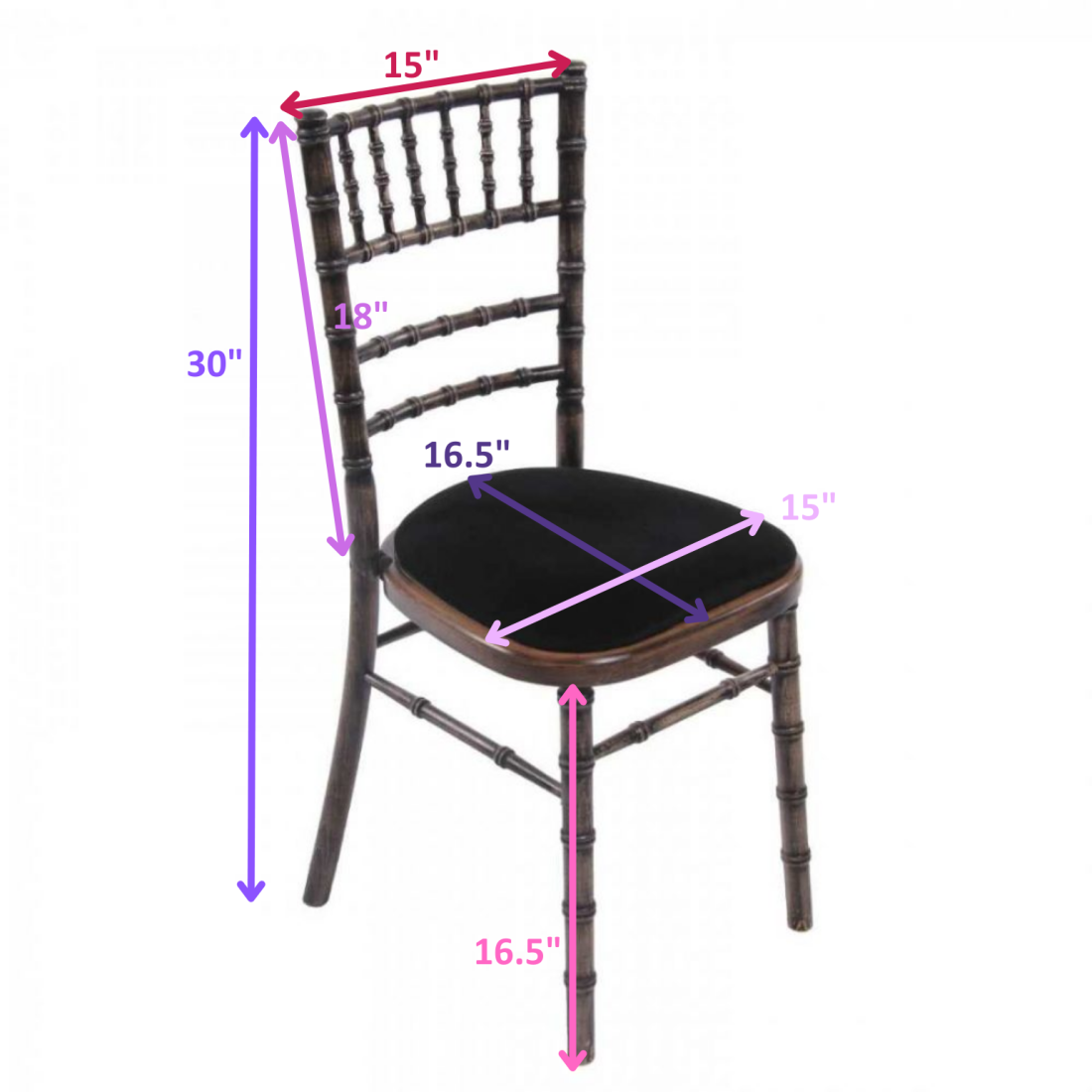 The timeless choice for a wedding or event, in a Black wash finish. Please note that these are a black wash, not solid black.