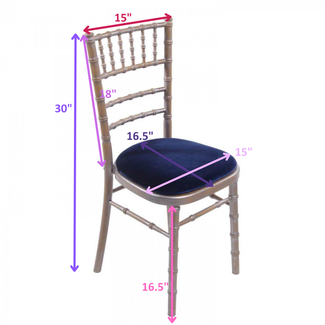 The classic Chiavari chair is available in a variety of colours, and comes with a choice of seat pads.