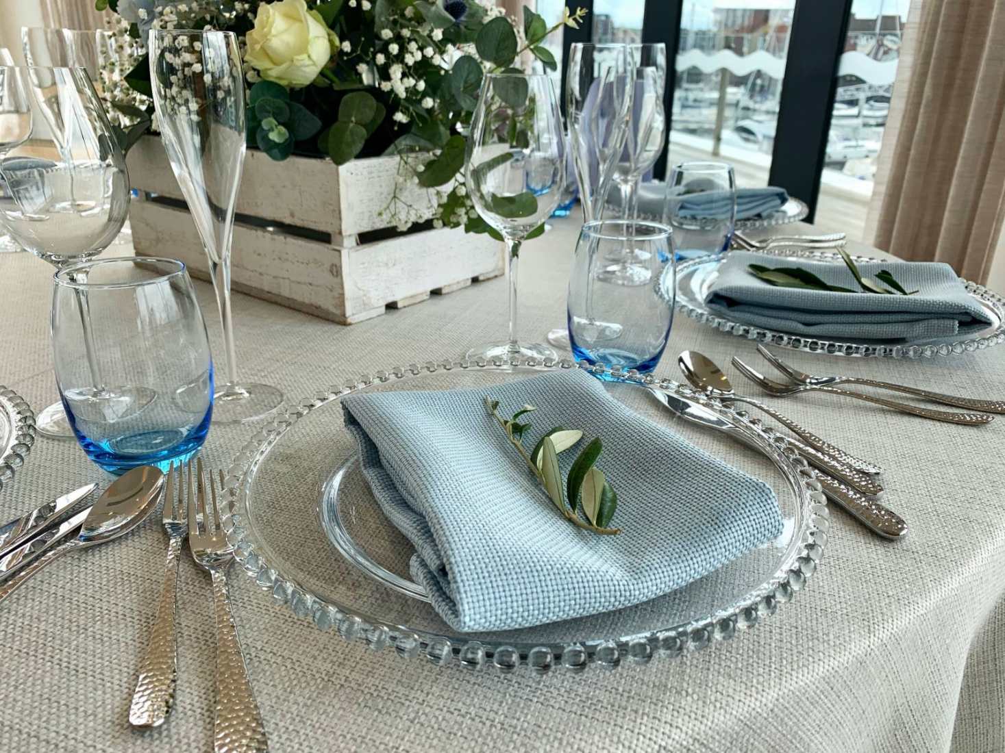Our clear glass charger plates, with beaded edge design, are the perfect addition to your table for a truly elegant touch.
