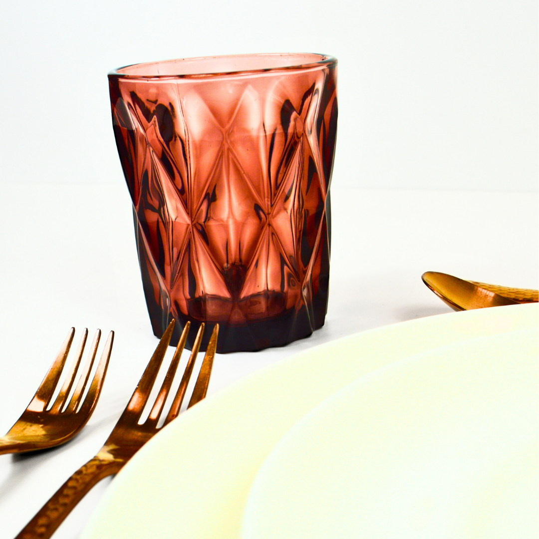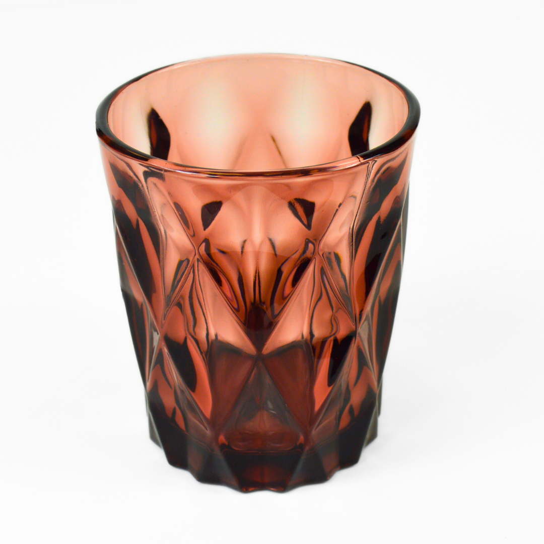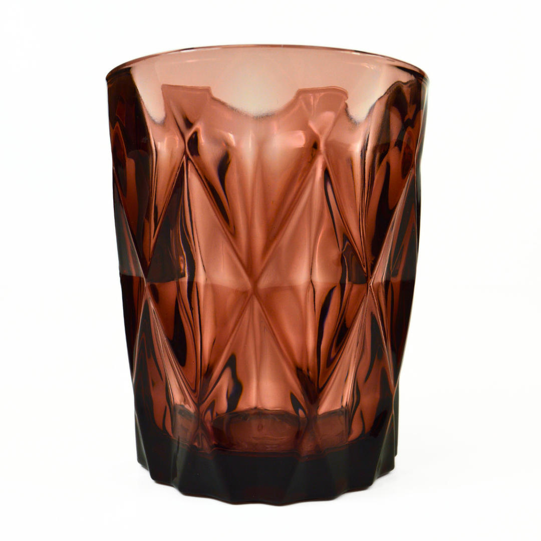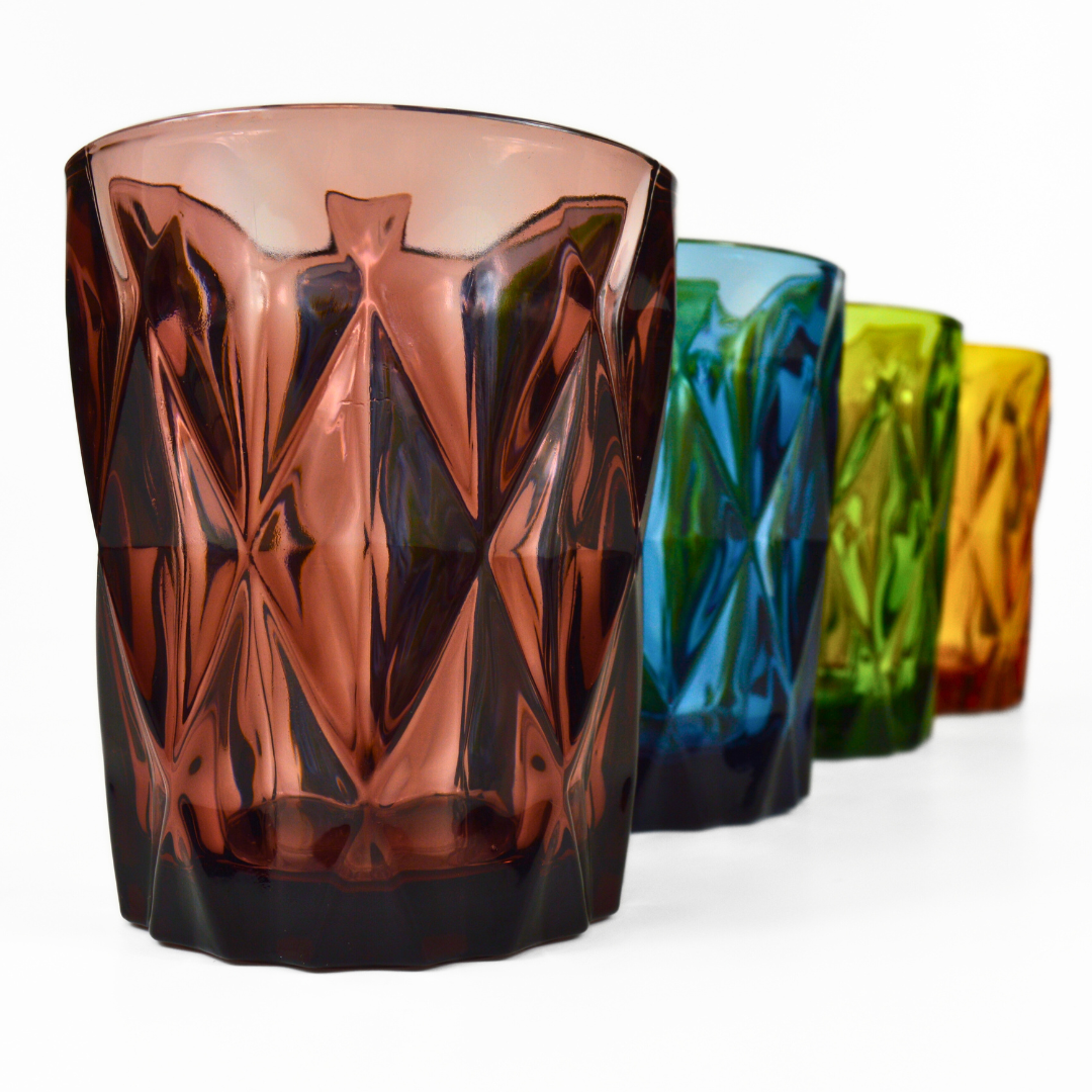 Colour is infused in the glass, thus it will not fade over use/ washes. The unique, diamond-like texture aids a comfortable, yet fashionable grip. These durable old-fashioned style glasses are perfect, from daily use to events and parties, an eye-catching addition to your table!