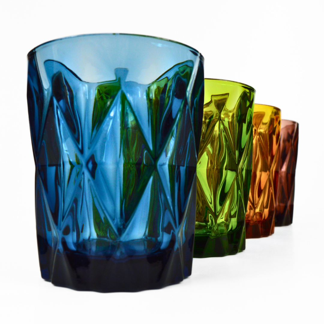 Colour is infused in the glass, thus it will not fade over use/ washes. The unique, diamond-like texture aids a comfortable, yet fashionable grip. These durable old-fashioned style glasses are perfect, from daily use to events and parties, an eye-catching addition to your table!