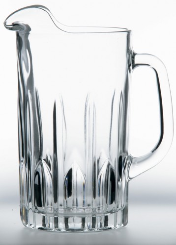Stylish Excalibur glass jug, 48oz capacity, perfect for serving beverages at parties, gatherings, or daily use. Features a sleek design with a sturdy handle and spout for easy pouring. Ideal for adding a touch of elegance to your tableware collection.