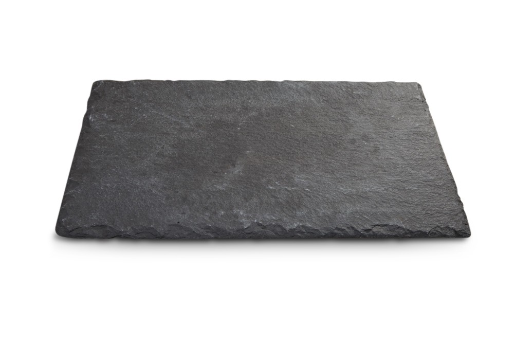 Stylish grey serving slate, perfect for presenting appetizers, cheeses, and desserts with a modern touch. Crafted from high-quality slate, offering a natural, rustic aesthetic. Ideal for adding elegance to your dining or entertaining experience. Measuring 21″ x 14″.