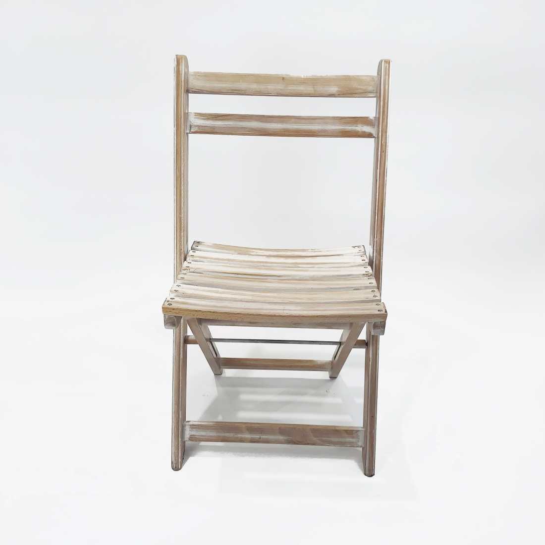 Our folding wooden chair in a Lime wash finish is the perfect addition for a more casual or rustic styled event. Suitable for indoor and outdoor use.