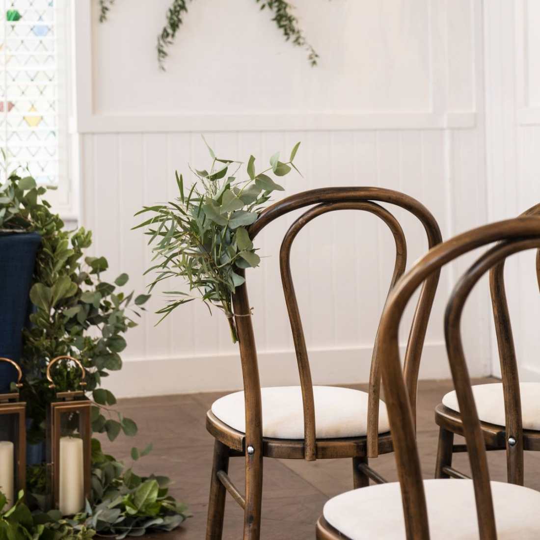 Our loop back chair in Rustic Oak is a very popular seating option for any wedding or event. Available with a choice of seat pad colours.