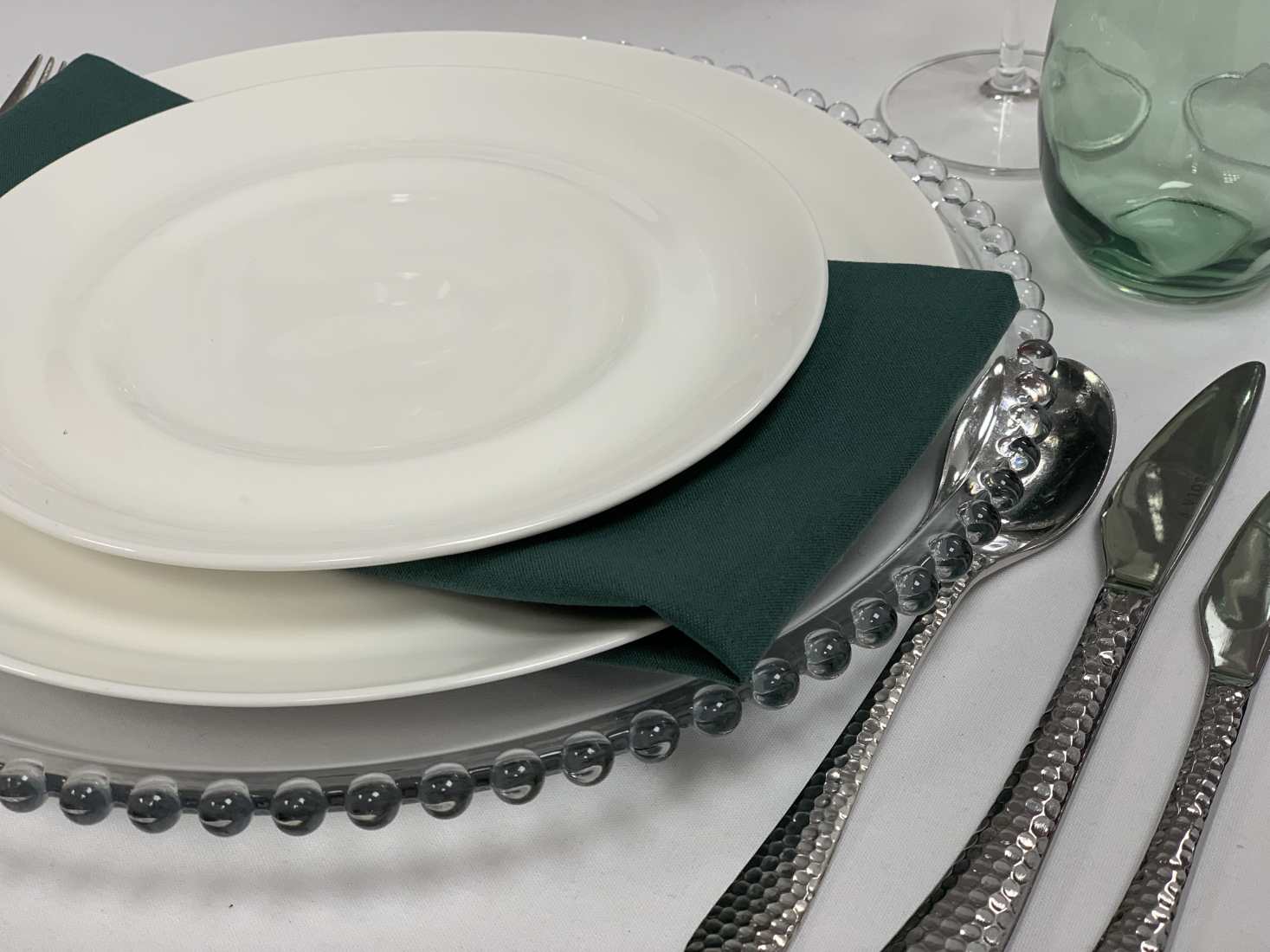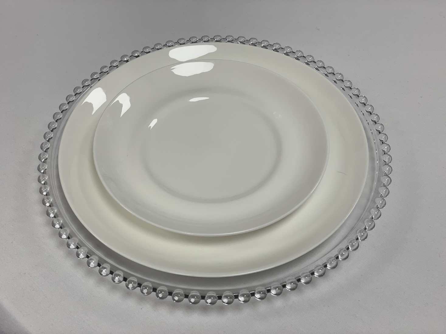 - 25 x Glass beaded charger plates