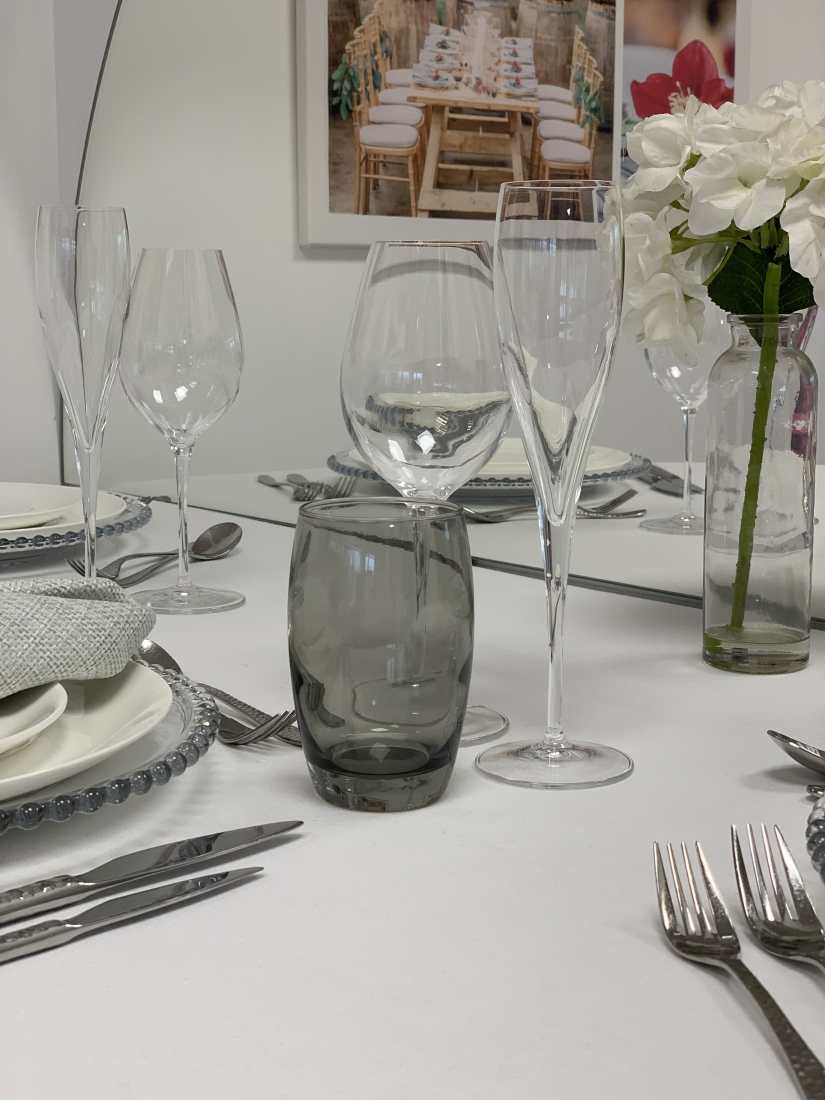 Our ‘Luxury’ event hire package includes all the crockery, cutlery and glassware that you’ll need to lay an exquisite table for your wedding or party.