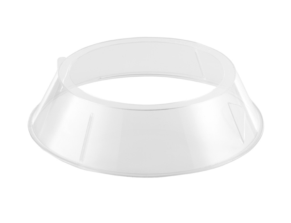 Efficient plastic plate stacking ring, designed to keep plates organized and secure during transport or storage. Ideal for catering events, restaurants, and buffets, this durable stacking ring helps save space and ensures easy access to plates. Essential kitchen storage.
