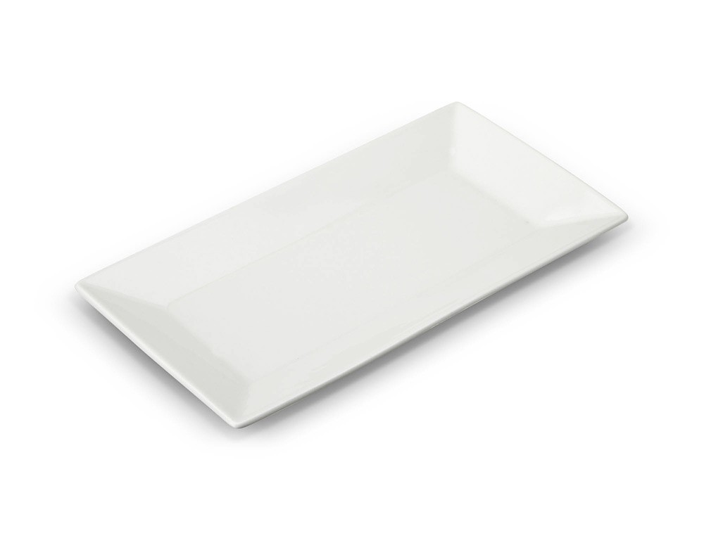 White rectangular plate, 10″ in length. Ideal for serving a variety of dishes from appetizers to main courses. Its modern design and sleek edges enhance presentation while providing ample space for creative plating. Perfect for both casual and formal dining settings.
