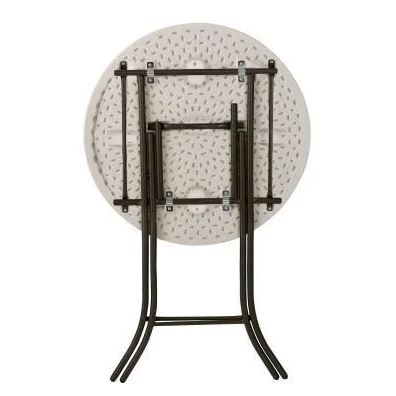 Our simple, folding poseur table has a Beige plastic top and measures 33″ in diameter. The perfect hire for standing events and formal networking functions.