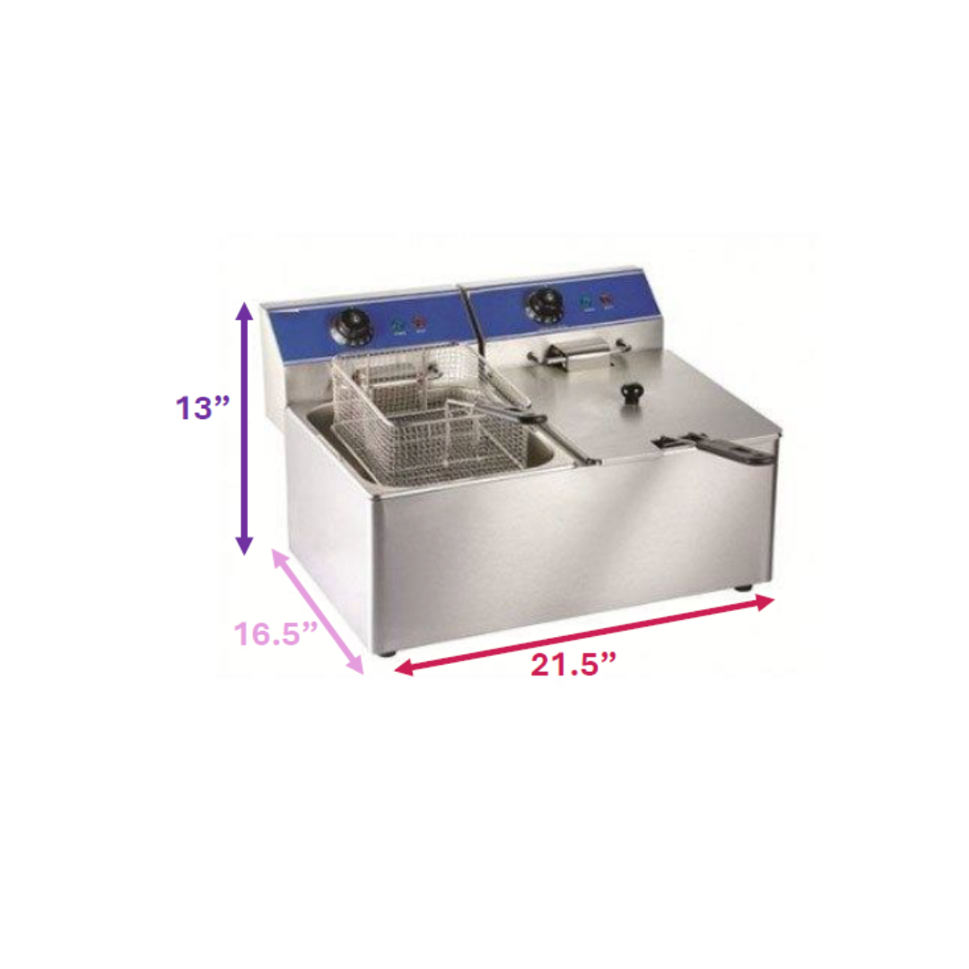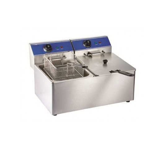 Efficient double table top fryer with dual 8-liter capacity, perfect hire for busy kitchens and catering events. Features independent controls for versatile frying options. Compact, durable design ensures fast, even cooking. Ideal for restaurants, cafes, and food service operations.