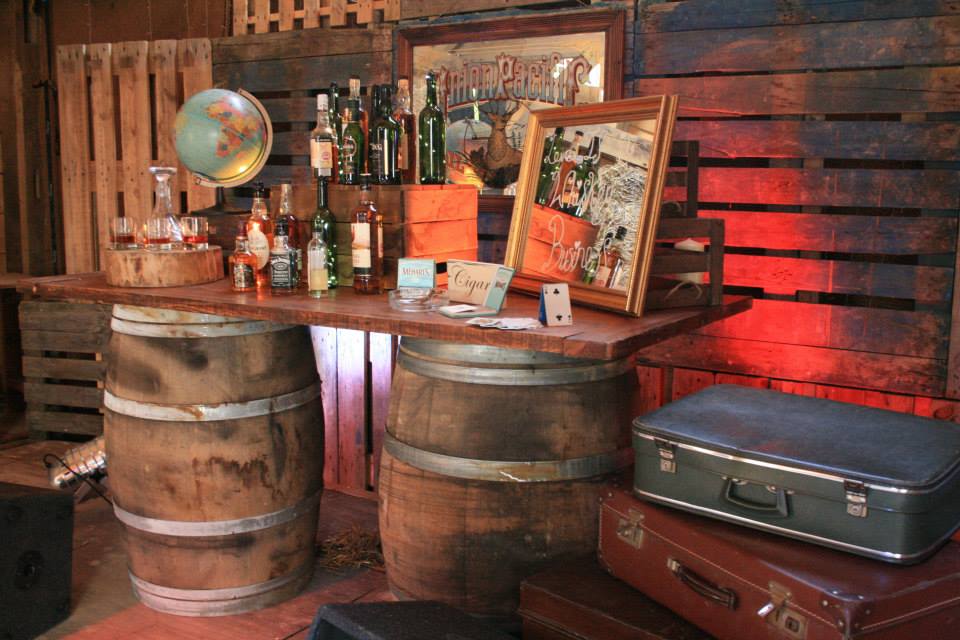 6ft Vintage barrel bar, consisting of 2 vintage barrels plus a bar top. Elegant 6ft rustic barrel bar, perfect for adding a charming vintage touch to weddings, parties, and special events. Crafted from authentic barrels, this spacious bar is both functional and stylish, creating a unique centerpiece for any occasion. The bar top rests on the Vintage barrels, giving your bar a rustic effect – A beautiful way to display your bottles, beverages and more!