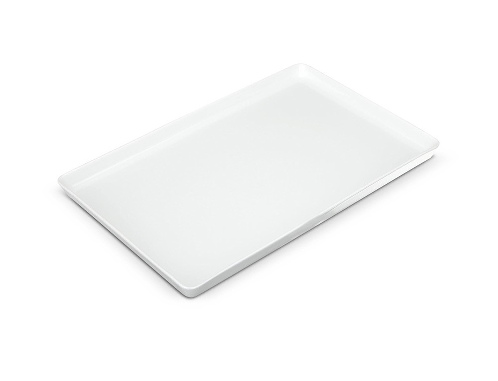 Simple White porcelain serving tray measuring 14″ x 8.5″.