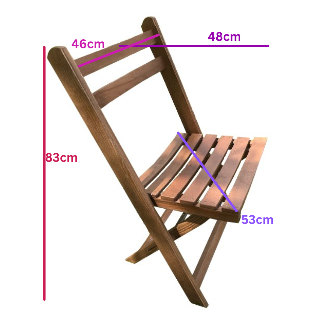 Our folding wooden chair is the perfect addition for a more casual or rustic styled event. Suitable for indoor and outdoor use.