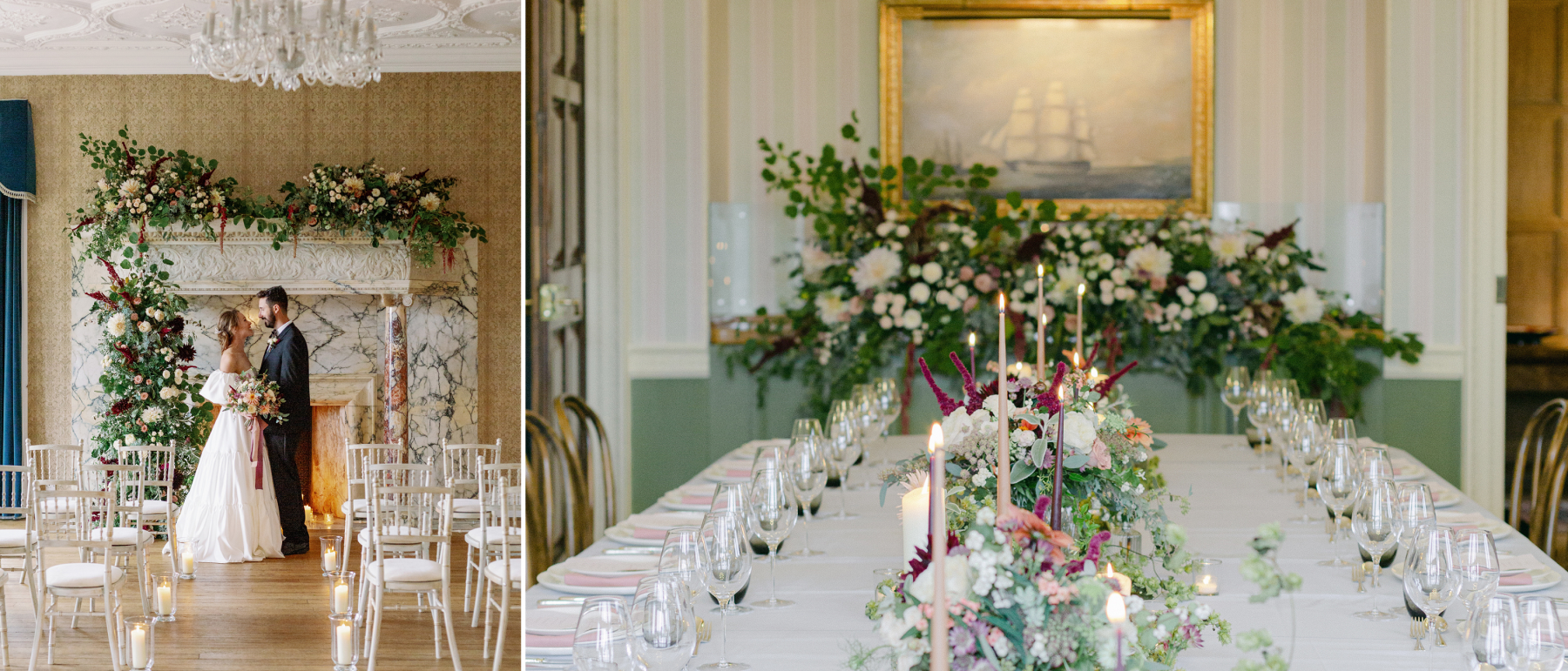 2020 brought with it a few new challenges for the events industry, and wedding industry professionals were inspired to prove that small can still mean beautiful. This intimate wedding shoot was put together to showcase how a wedding for 15 could look at the beautiful Balcombe Place. Traditional tones of red, white and dusky pink were put together to create this wonderfully intimate wedding ceremony and dining table.