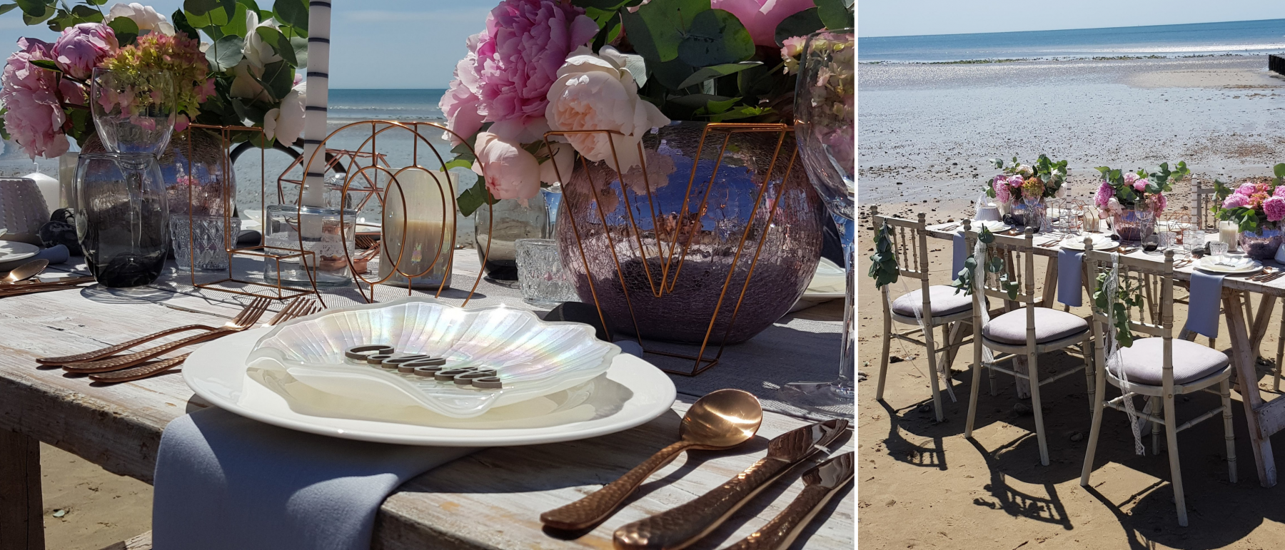 We have all heard of wedding ceremonies on the beach, but what about dining there as well! Tables were set up on the waters edge featuring wistful pinks and blues to create this dreamy set up. Just imagine on a hot summers day, dining with the wind in your hair and the waves lapping at your feet!