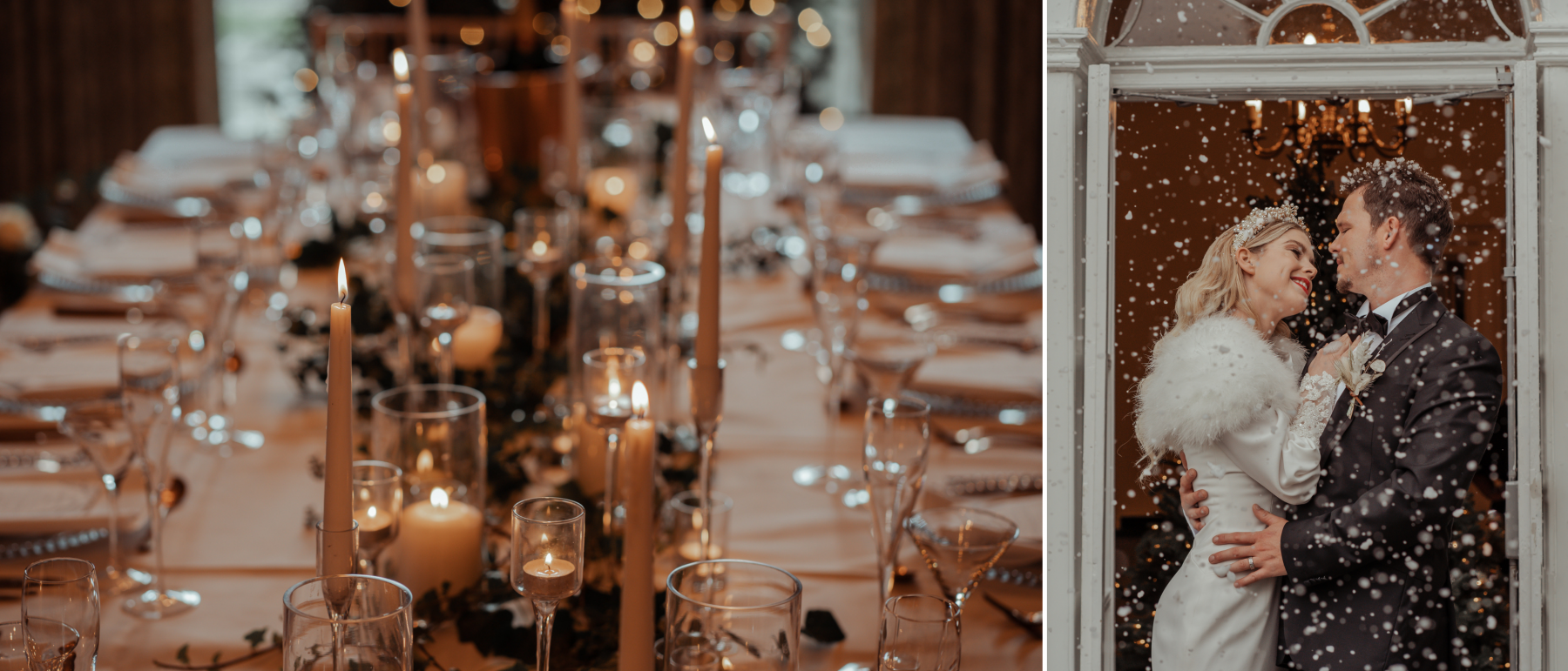 What a wonderful way this was to end the year. A full on, Hollywood inspired, romantic winter wedding, complete with snow machine! The colour scheme was kept simple… White, green and crystal, with candles everywhere to enhance the ‘sparkle’. Not forgetting the all-important backdrop of the Christmas Tree.