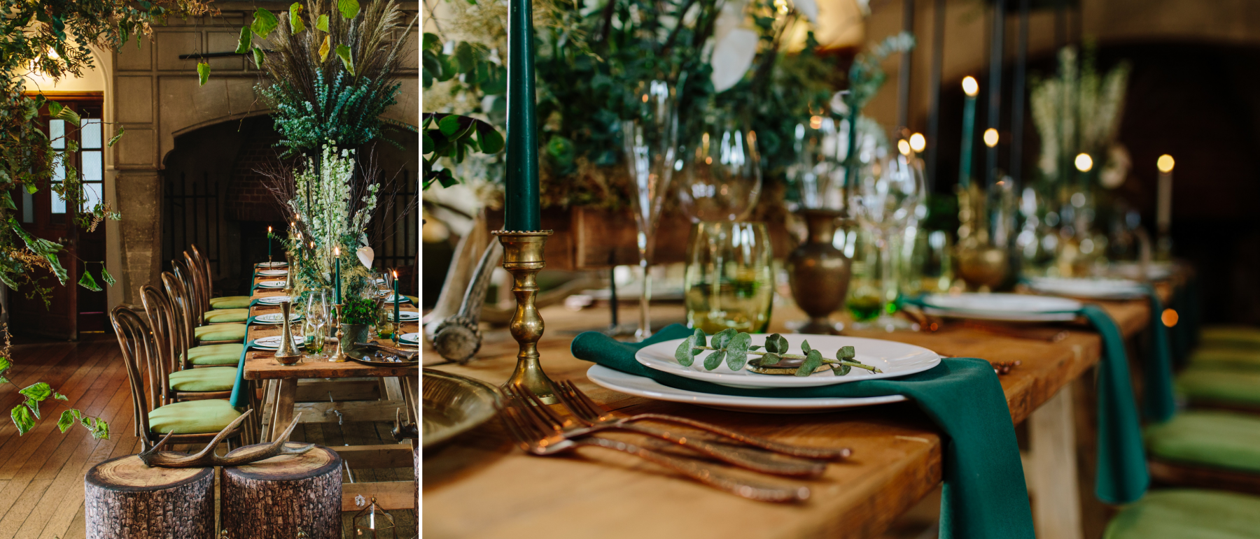 In the heart of the Ashdown Forest in Mid Sussex, you will find The Ravenswood. This warm, countryside hotel is the perfect backdrop for a cosy, romantic, winter wedding, so that’s exactly what we did. With rich green tones and lots of wood we went for an almost ‘hunting lodge’ theme with this gorgeous styled shoot.