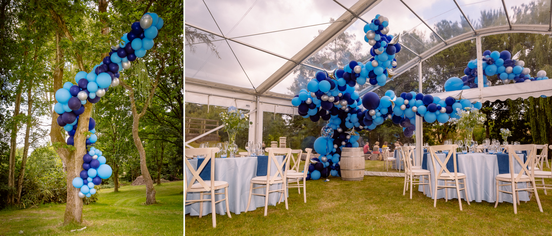 It’s not just weddings that we do styled shoots for, we love to experiment with all sorts of events. Which is why we got involved with a boys Christenings in a private garden. A simple set up showcasing a clear marquee, with subtle blue tones and an incredible balloon installation from Airmagination.