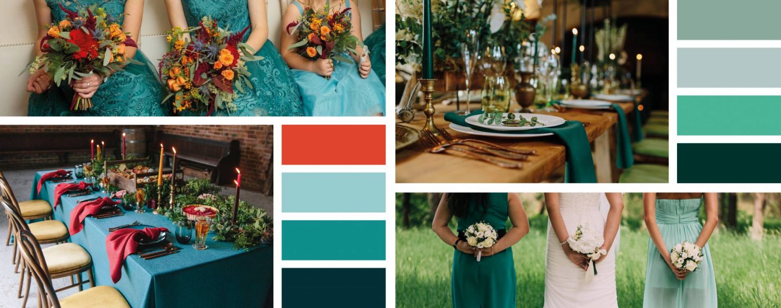 With Autumn becoming an ever-increasingly popular season for weddings, autumn shades are coming to the fore! Autumnal oranges, reds, browns and mustards are being teamed up with teal for a real colour pop!